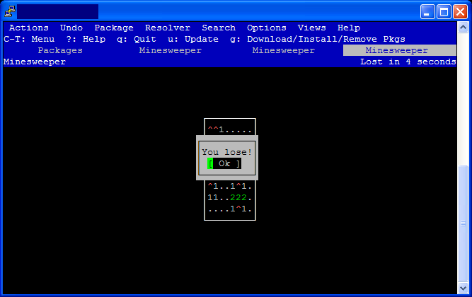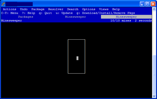 Nothing too exciting, right? But, if you get bored, you can press CTRL+T to open the menu, where you see the option "Play Minesweeper", so you then press P and get: