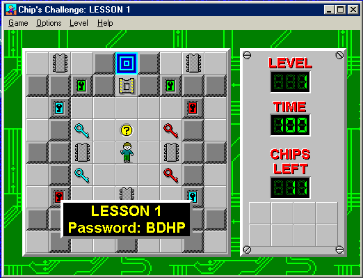 Chip's Challenge, if you've never heard of the game somehow, was packed in with a lot of computers during the 16-bit Windows heyday. It developed a kind of a strong following somehow. I stars you, as Chip, who has to run around a series of levels avoiding enemies, collecting things, and searching for the exit.