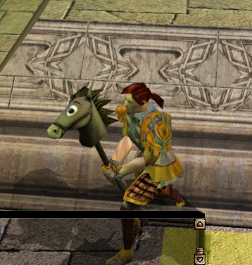 Once that's successful, marvel at how your character is now riding one of those stick-horses and makes galloping noises.