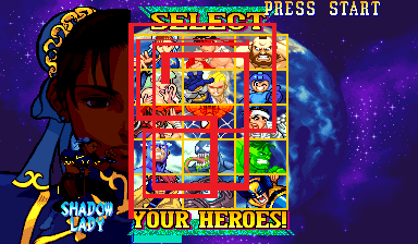 Then, quickly, move the joystick Up, Right, Right, Down, Down, Down, Down, Left, Left, Up, Up, Up, Up, Right, Right, Left, Left, Down, Down, Right, Right, Down, Down, Left, Left, Up, Up, Right, Right, Up, Up, Left, Left, Down, Down, Down, Down, Down. Done right (and fast enough) and your reticle will go off the bottom of the screen and you'll select the mysterious Shadow Lady.