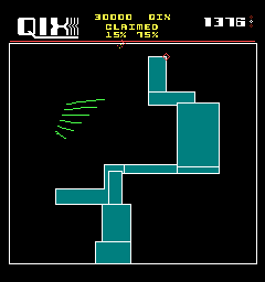 You have a marker that you have to use to block off portions of the playfield. The portion you get is the smallest area that doesn't contain the Qix (which is the pulsating line-thing in the middle of the screen.